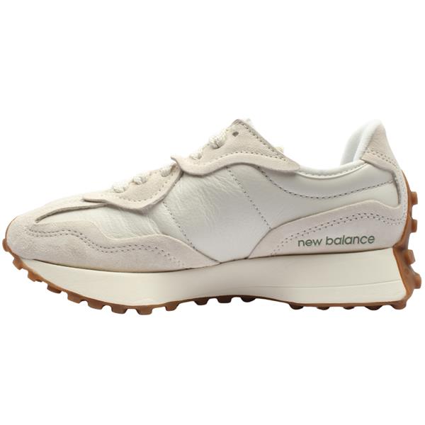 Stylish ladies trainers from New Balance shoes in a versatile off white upper with Green oversized N design. The New Balance 327s are trendy and stylish trainers that combine retro design elements with modern flair. With a cushioned midsole, these trainers offer excellent comfort and support for all-day wear. The lace closure and removable insole all allow for the perfect fit.
