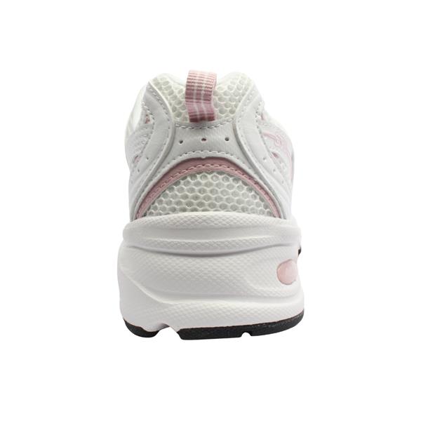 Fresh and effortlessly stylish, the New Balance 530 Ladies Runners combine classic running heritage with a modern, feminine touch. Finished in crisp white, this versatile trainer is enhanced with soft pink detailing, adding a subtle pop of colour while maintaining a clean, sporty look. Built for everyday comfort, the breathable upper and cushioned midsole work together to provide supportive, all-day wear. A durable rubber outsole delivers reliable traction and stability, making this runner ideal for both active days and casual styling. Easy to pair with athleisure or relaxed outfits, the New Balance 530 is a timeless choice with a contemporary twist