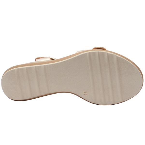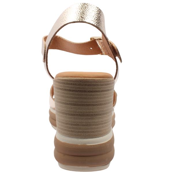 Womens wedge sandals from Oh My Sandals. Adjustable buckle straps across the toe and ankle allow for a secure and personalised fit. The wedge platform sole provides flattering height with added stability and comfort. A soft leather insole enhances cushioning.