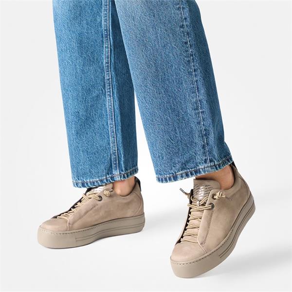 Introducing Paul Green shoes, known for their modern design and comfort. The Paul Green trainers - style 5017- is a chunky trainer in a neutral taupe, crafted with premium soft nubuck leather, upper. It features a lightweight, cushioned sole for excellent support and all-day wearability. Paul Green Shoes "Super Soft" technology enhances the comfort, providing a plush fit and feel. Slip this style on with ease thanks to the elastic lacing.