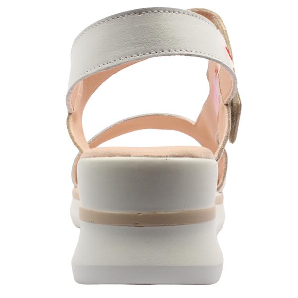 The Pepe Saenz sandals, 11141 combine the elegant craftsmanship of Spanish design with everyday practicality, they are a standout choice for summer. This low wedge sandal features a sophisticated tri-tone palette of white, cream, and metallic gold , making it a versatile companion for everything from cropped trousers to sundresses. Equipped with a cushioned footbed that provides all day support, designed for those who values both style and comfort. A practical Velcro fastening on the ankle strap allows a quick, adjustable, and secure fit.