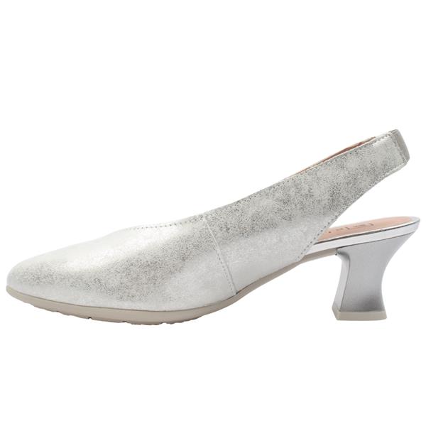 Elegant, comfortable, and effortlessly wearable, these Pitillos sling back shoes are designed for women who want everyday style without compromising on comfort. Crafted with a sleek, feminine silhouette, these shoes are perfect for special occasions. The sling back strap provides a secure yet flexible fit, while the softly cushioned insole supports all-day comfort. A shimmering silver upper and subtle heel add a touch of sophistication, making this style easy to pair with dresses, trousers, or skirts.