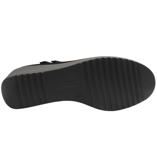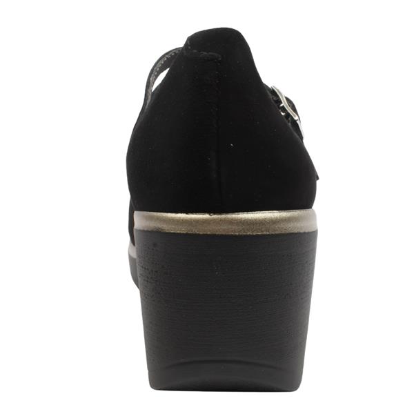 Step into effortless comfort and modern elegance with the womens Pitillos shoes. Crafted in premium black suede, the upper offers a soft, refined finish. The double strap with buckle detail adds a touch of sophistication while ensuring a secure fit. A chunky wedge sole provides subtle height with excellent stability. Inside, a cushioned soft lining and insole offer a plush, supportive feel that adapts to your foot.
