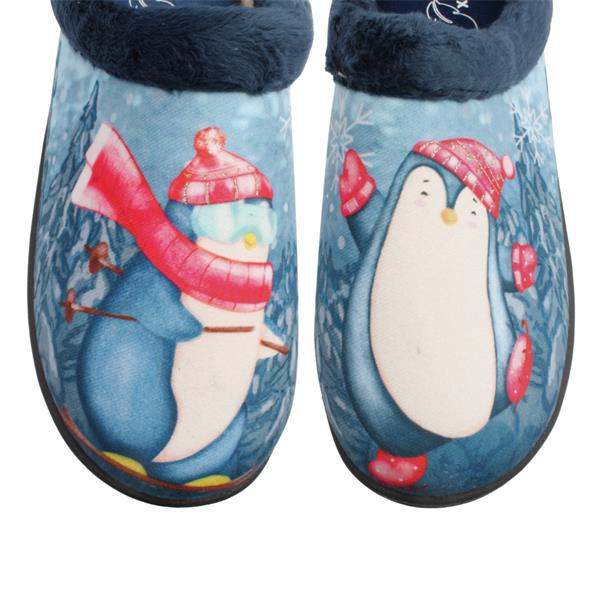 Cute ladies slippers from Plumaflex Slipper range with an adorable penguin design. This slip on mule style have a padded memory foam Insole and cosy lining. They have a fresh eucalyptus scent for freshness.