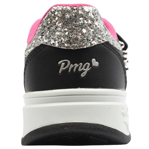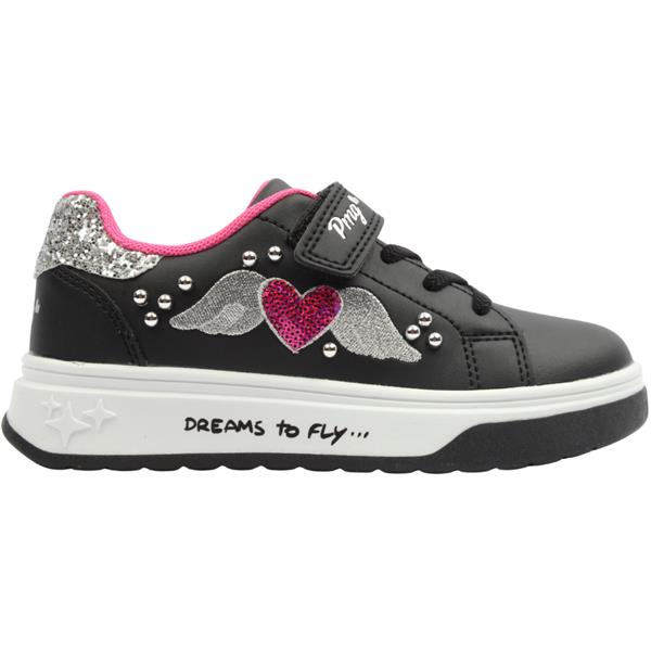 Cute girls runners from Primigi shoes. Sleek black upper offers a versatile base, accented with a silver glitter sparkle panel at the back ankle for a dash of magic. Sturdy black upper with glitter accents for visual pop and durability. Genuine leather footbed, offering breathability, softness, and a touch of luxury underfoot. Easy to slip on thanks to the Velcro strap, but the elastic laces help keep the foot firmly in place.