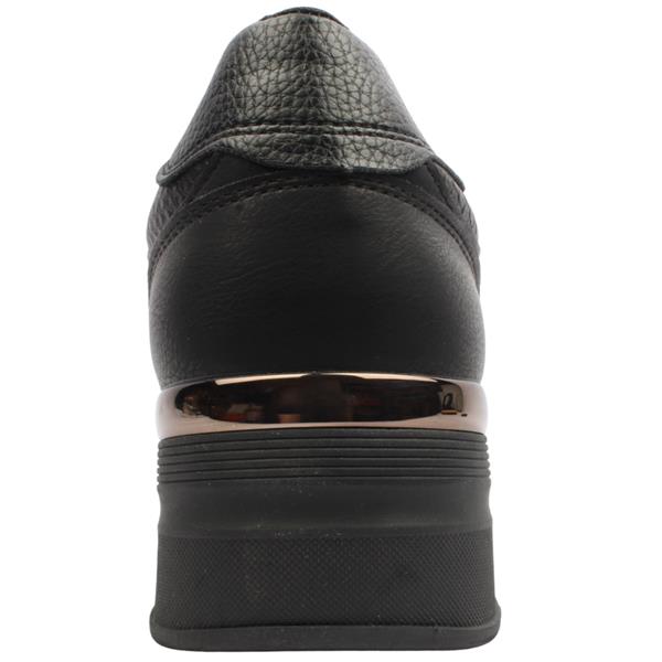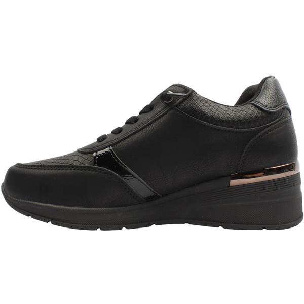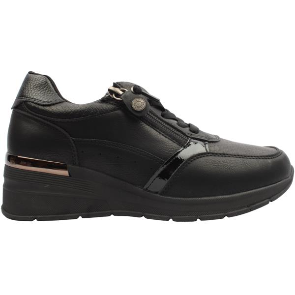 Step up your everyday look with the Ladies shoe by Refresh. Featuring a black upper, elasticated laces, and a convenient side zip closure, this shoe is easy to slip on and secure for all-day wear. Designed with a subtle elevated heel and a removable insole allowing an adjustable and comfortable fit.