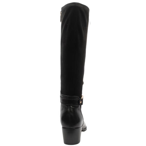 Elegant and versatile, the Regarde Le Ciel Jolene 35 are timeless kneehigh boots crafted in a luxurious mix of smooth black leather and soft stretch suede panel at the calf area. A full side zip ensures effortless on/off, while the sturdy block heel adds height and comfort for all-day confidence. Finished with a chic gold buckle detail at the ankle, this boot brings understated sophistication to both casual and dressy looks.The kneehigh design offers coverage and warmth, making these boots suitable for colder seasons or adding a fashionable touch to your outfit.