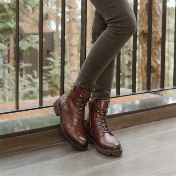 Versatile brown ankle boots from Remonte Shoes, crafted for both function and fashion. Featuring classic lace up detailing and a convenient inside zip for easy on-and-off, these boots are designed to fit your lifestyle. (The outside zip is purely decorative). The cosy inner lining keeps your feet warm through chilly days, while the Remonte TEX waterproof membrane offers protection against rain so you stay dry no matter the weather. Perfect for everyday wear, these ankle boots combine durable craftsmanship with timeless style..