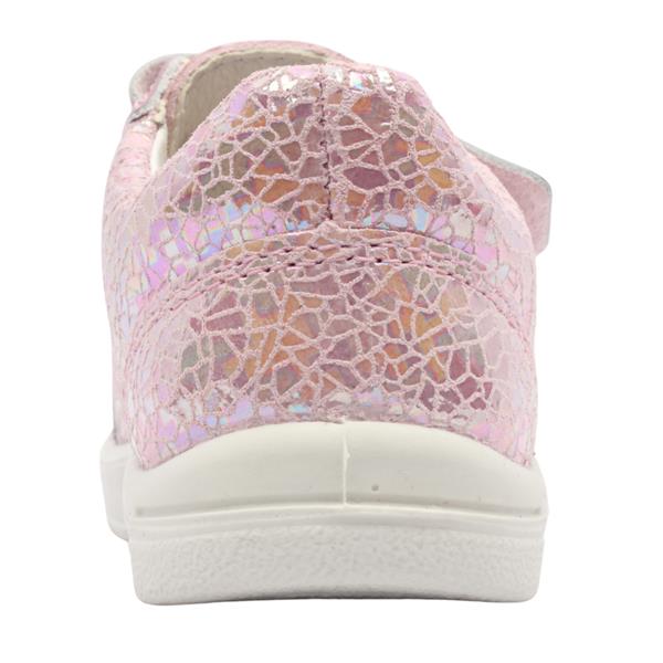 Add sparkle to every step with these cute girls shoes from Ricosta. Crafted with a pink patent leather upper featuring a playful holographic design this shoe is both stylish and fun. The double Velcro closure ensures a secure and adjustable fit for growing feet. Designed with practicality in mind the insole includes an attached measurement guide to help ensure the perfect fit every time.
