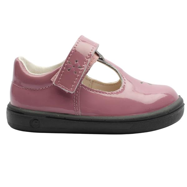Little girls T-Bar shoes by Ricosta Shoes. A lightweight & flexible shoe which has a soft lavender patent leather upper with punched hole floral detail at the toe. This shoe has a T-bar design and a velcro strap closure for easy on/off. The Removable leather insole features a handy fitting guide around the toe area to ensure the correct fir for your little one.