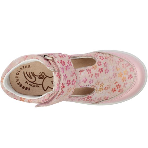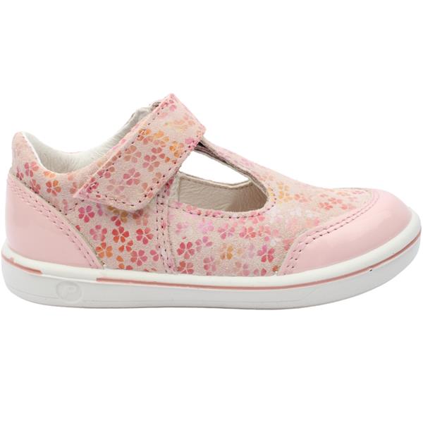 These Ricosta Shoes have a Pink Patent and floral Leather Upper with a T Bar, a velcro strap at the ankle. These Pepino Shoes have a removable leather insole with size guide.