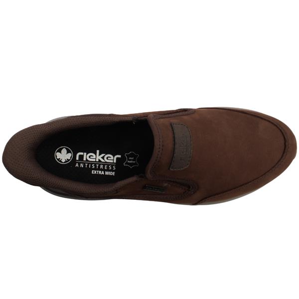 Brand: Rieker Style: 06052-22 Colour: Brown Width: Extra Wide Closure: Slip On Removeable Insole: Yes Heel Height: Approx 3cm Materials: Leather/synthetic upper, textile lining & manmade sole.