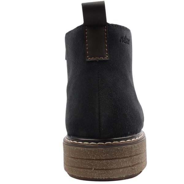 Blending rugged style with all-day comfort, this Rieker men's boot is built for both looks and performance. The soft Navy suede upper offers a refined, casual look, while the combination of lace up and side zip closures provides a secure and easy fit. A slightly elevated sole adds subtle height, and the signature Rieker Antistress insole ensures cushioning and flexibility. Finished with a fleecy insole and soft lining for added warmth and comfort.