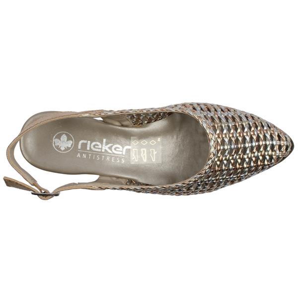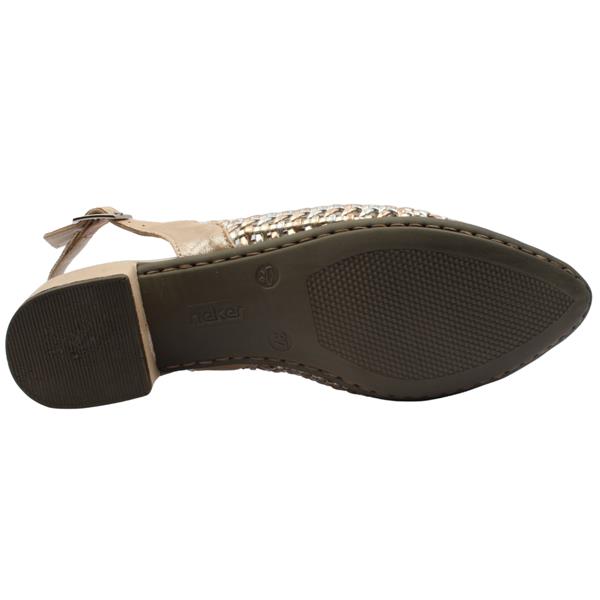 Brand: Rieker Style: 47078-90 Colour: Silver Multi Closure: Buckle Height: Approx. 4CM Removable Insole: No Materials: Synthetic Upper/Lining & Manmade Outsole