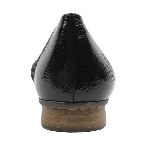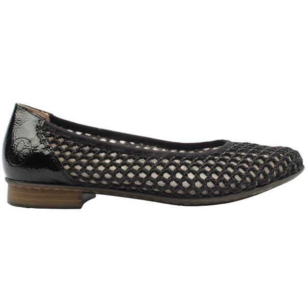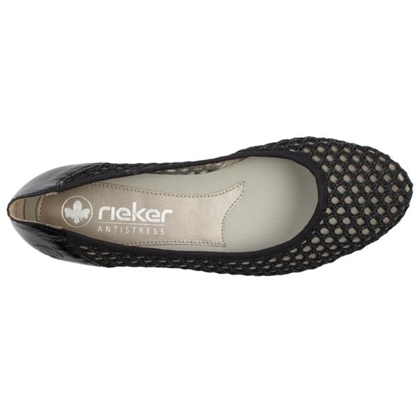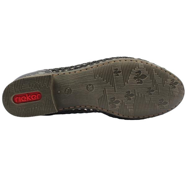 Discover effortless summer style with the Ladies Rieker 51960 pumps, crafted in a versatile black woven material with a patent accented detailing. Designed for lightweight comfort and everyday wear, this elegant pump features Rieker Shoes signature Antistress cushioned insole, providing excellent underfoot support and a relaxed, flexible feel throughout the day. The woven upper adds subtle texture and sophistication, making it a versatile choice for both casual and smarter occasions.