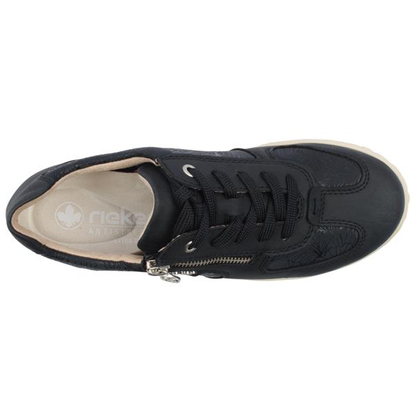 These wide fitting ladies Rieker Shoes offer effortless comfort and are designed to support your feet throughout the day. Designed in navy upper, this versatile shoe features a super soft upper that ensures a comfortable, pressure-free fit. A combination of lace & zip closure ensures easy on/off and ensures a snug fit. Inside, the removable Rieker Shoes Antistress insole provides excellent cushioning, flexibility and shock absorption, delivering all-day comfort with every step.