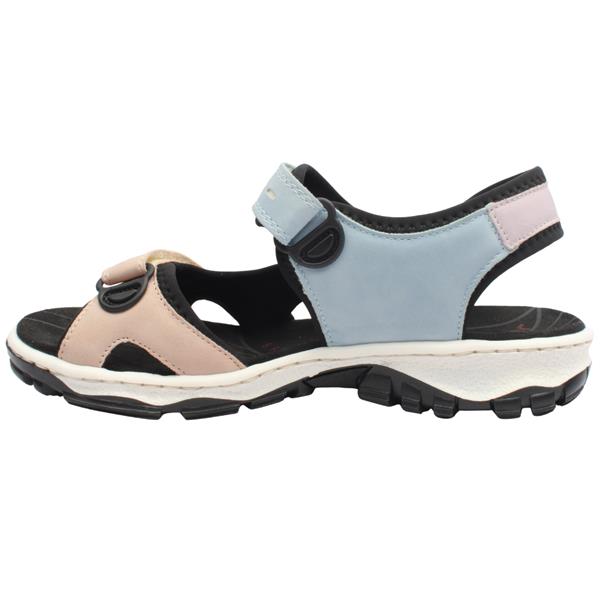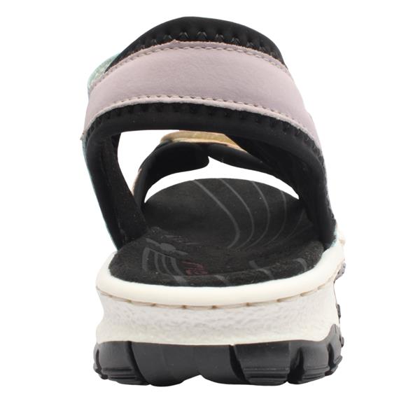 Ladies walking sandals, Style 68866 from our Rieker sandals range – a fusion of style and comfort, perfect for the woman who values both fashion and functionality in her footwear. Practicality meets style with the adjustable straps, allowing you to customise the fit to your preference. The secure closure ensures stability, making these sandals suitable for various outdoor activities.
