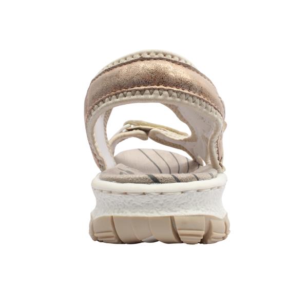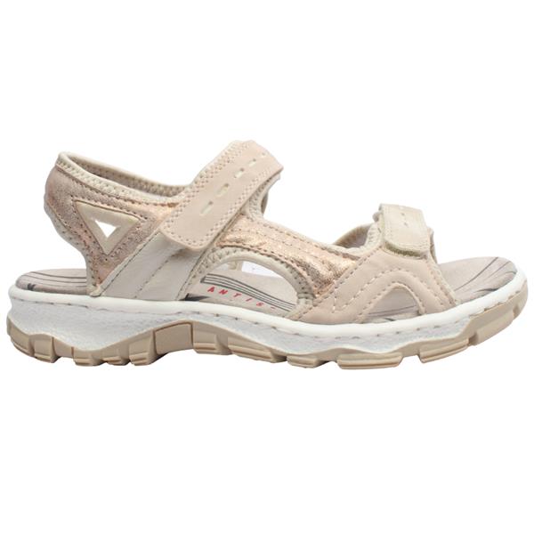 Ladies walking sandals from our Rieker sandals range. A fusion of style and comfort, perfect for the woman who values both fashion and functionality in her footwear. Practicality meets style with the adjustable straps, allowing you to customise the fit to your preference. The secure closure ensures stability, making these sandals suitable for various outdoor activities.