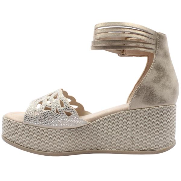 Step into summer in style with the Rieker Shoes 69457-60 ladies wedge sandals, designed to deliver both elegance and all day comfort. Featuring a flattering high wedge heel and platform sole, this sandal offers added height while maintaining excellent stability and support. The upper is beautifully finished with sparkling diamante detailing at the front, adding a touch of glamour perfect for both casual days and dressier occasions. A Velcro ankle strap with a faux buckle design provides the look of a classic buckle fastening with the convenience of easy adjustability for a secure, personalised fit. Built with Rieker Shoes signature antistress technology, the sandal includes a cushioned insole that is lightweight, flexible, and shock absorbing, lping to reduce fatigue and keep you comfortable from morning to night.