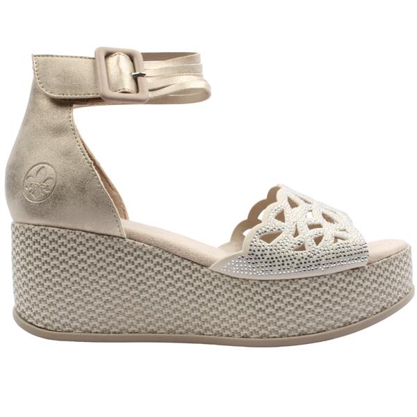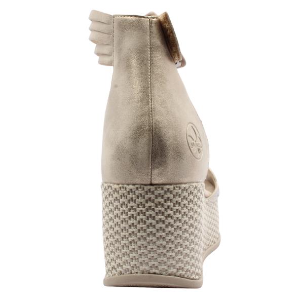 Brand: Rieker Style: 69457-60 Colour: Beige Closure: Velcro Strap Removable Insole: Yes Hel Height: Wedge Approx 6cm,Platform approx 3.5cm Materials: Synthetic upper, Textile lining & manmade sole
