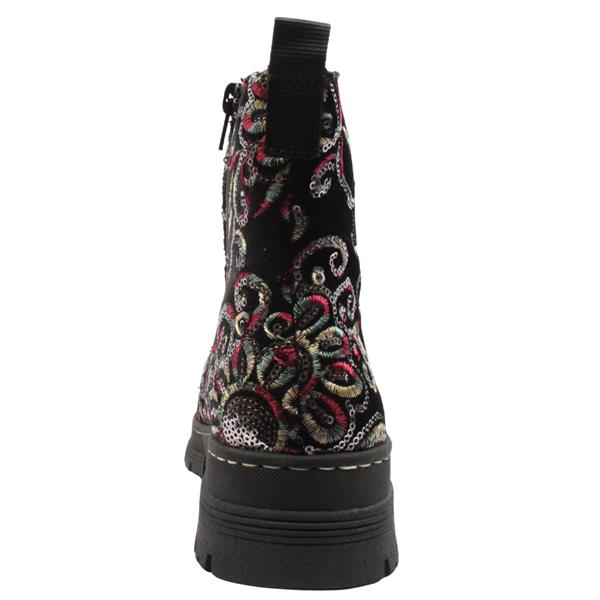 Add a touch of sparkle to your step with the Rieker 73820 ankle boot. Crafted in soft black suedette with floral and silver glitter detailing, this boot blends feminine charm with everyday comfort. A lace-up front and handy side zip make slipping them on and off effortless, while the warm fleece lining ensures cosy comfort in cooler weather. Lightweight and flexible, they’re perfect for all-day wear without compromising on style. A versatile choice for adding flair to casual outfits, this boot is both eye-catching and practical.