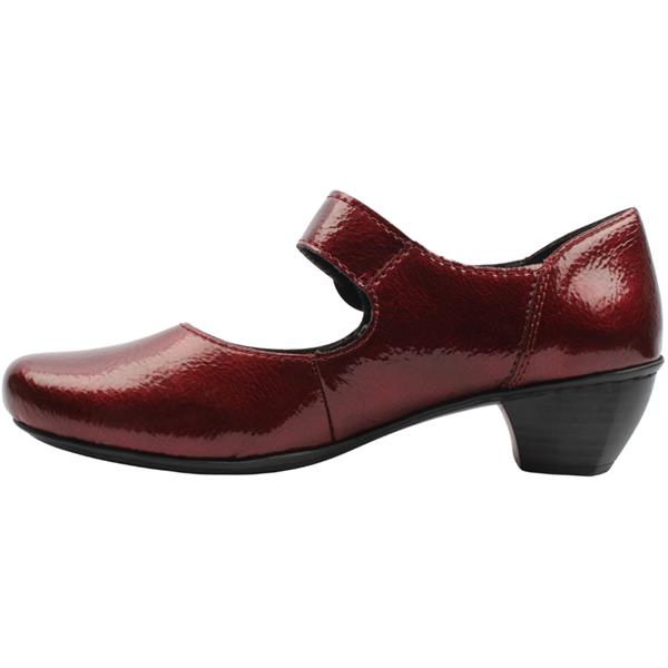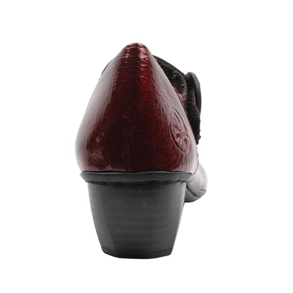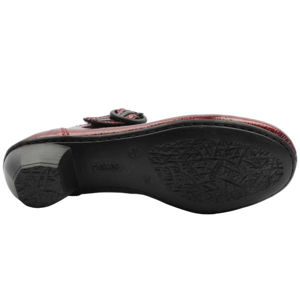Brand: Rieker Style: 41756-33 Colour: Burgundy Patent Closure: Velcro Strap Removable Insole: No Heel Height: Approx 3cm Materials: Synthetic upper & lining & manmade sole