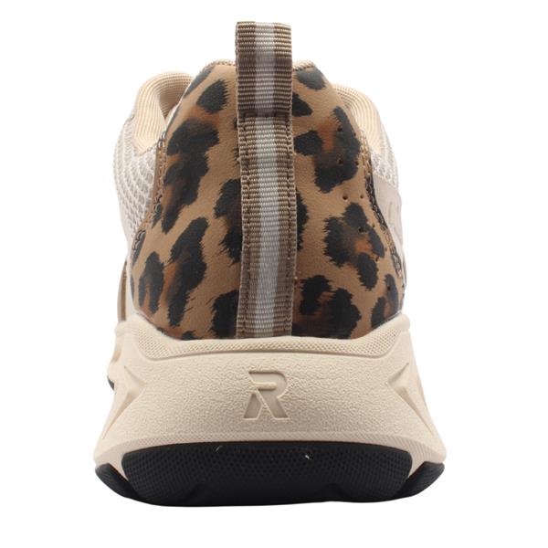 Step into all-day comfort with the Rieker M6501, Ladies Runner. This stylish sneaker combines practicality with subtle fashion-forward detailing, featuring a beige upper accented with dark taupe trims and a fun leopard print at the heel for a touch of personality. Crafted with a breathable mesh upper, the M6501 is ultra-lightweight, making it perfect for walking, travel, or everyday wear. Inside, a removable Rieker Soft insole provides cushioned support and can be replaced with custom orthotics if needed, ensuring maximum comfort for your feet.