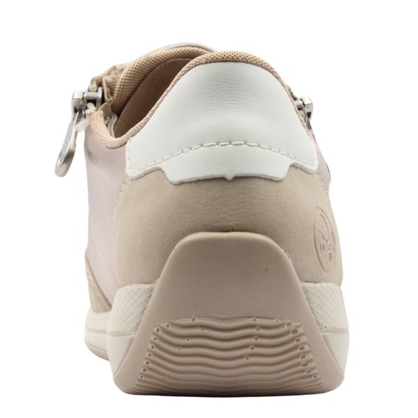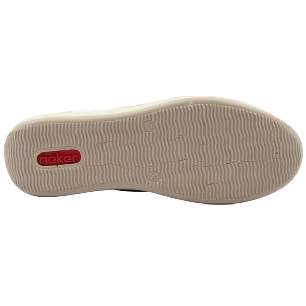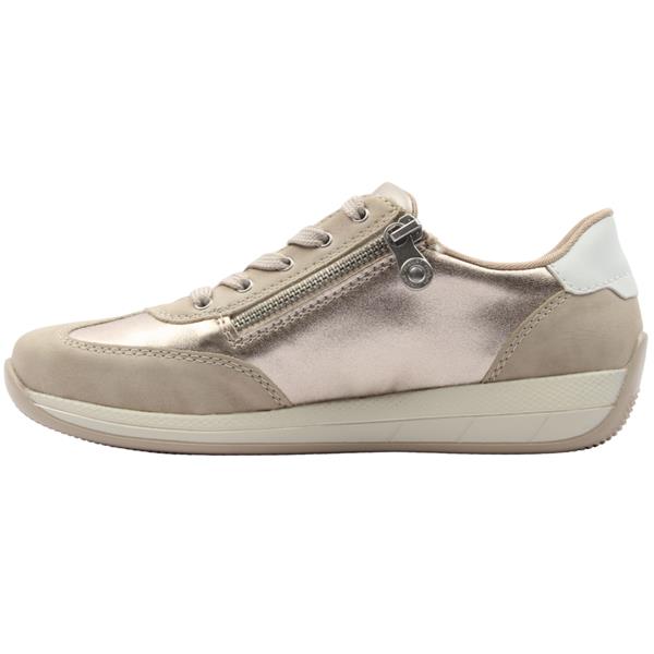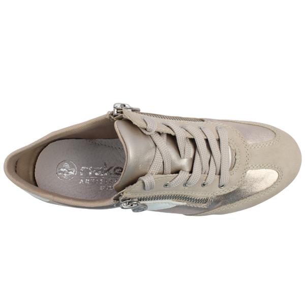 Add a touch of elegance to your outfit with these Wide fitting Ladies Rieker Shoes N1103. Crafted in a beige/gold combination upper, creating a look that is both modern and versatile. Designed with practicality in mind, it features a lace combined with a side zip, allowing for a secure fit and effortless on/off wear. Inside, the Rieker Shoes leather Antistress insole provides exceptional comfort and support for all-day wear.
