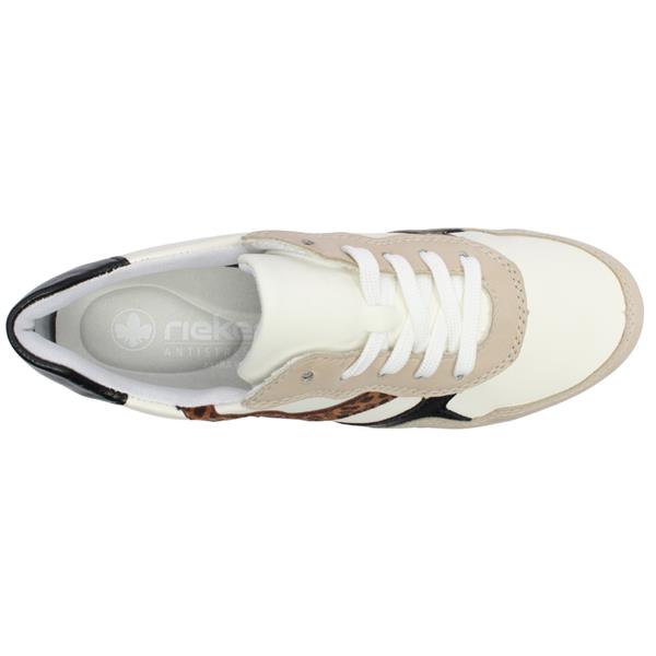 Step out in style and comfort with the Rieker N1200-80 Ladies Shoes, designed to bring a fashionable edge to everyday wear. Finished in a versatile beige upper, this sporty runner is elevated with eye-catching taupe, black and subtle leopard print detailing for a modern, on-trend look. Built with Rieker Antistress technology, the shoe offers lightweight construction, flexibility and excellent shock absorption for all-day comfort. The removable Antistress insole allows for easy replacement or the use of custom orthotics, while the extra wide fitting provides added room and support for a more relaxed, comfortable fit.