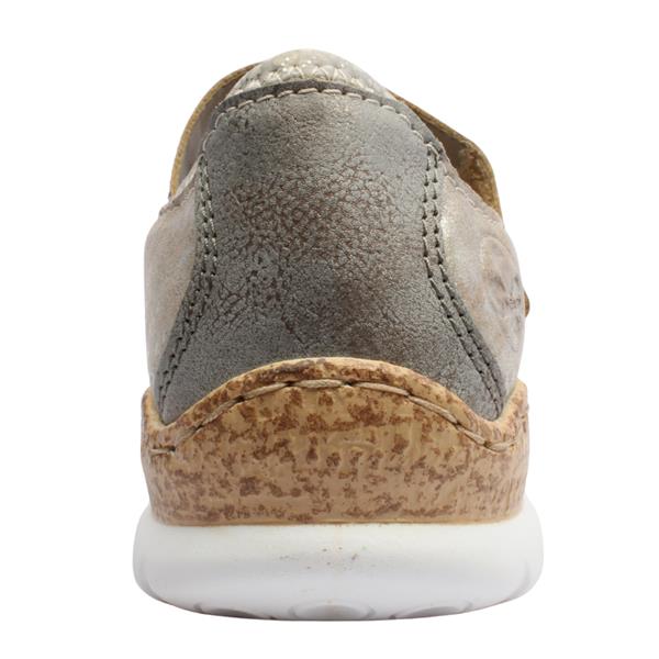 Experience all day comfort with these Ladies Rieker shoes N4299 in a stylish metallic finish. Designed with a beautifully detailed laser-cut perforated upper, this shoe offers a modern look. The adjustable Velcro strap ensures a secure and personalised fit, making it easy to slip on and off. Inside, the padded Rieker Antistress insole provides exceptional cushioning, flexibility, and shock absorption for all-day comfort. Lightweight and supportive, these Rieker shoes are perfect for everyday wear