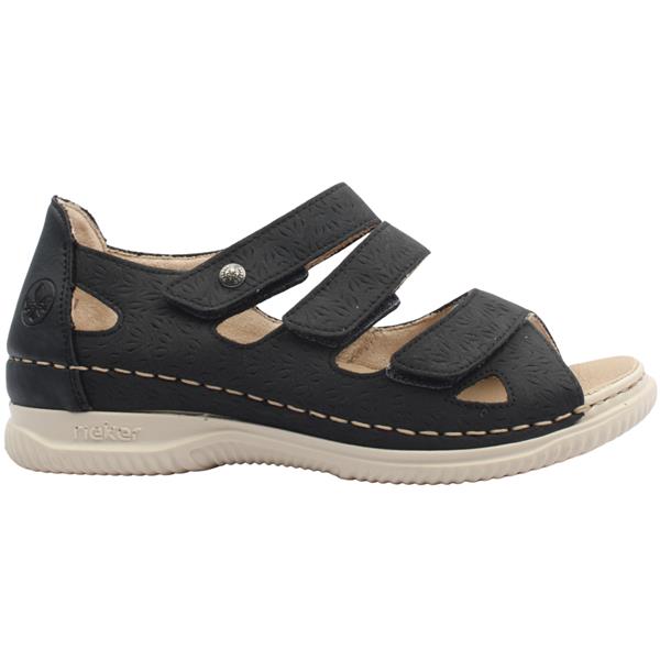 Step into everyday comfort with womens sandals from Rieker shoes. Three adjustable velcro straps allow you to customise the fit across the foot. The closed heel design provides added stability and support when walking. Inside the sandal features a Rieker Antistress leather insole, designed to cushion every step and reduce pressure.