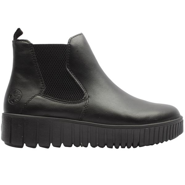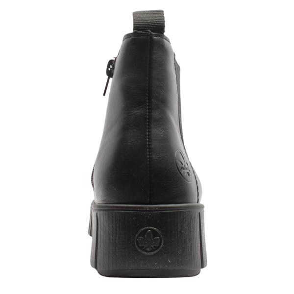 Brand: Rieker Style: Y6151-00 Colour: Black Closure: Side Zip Removable Insole: Yes Heel Height: Approx 4.5cm Materials: Synthetic upper, textile lining & manmade sole