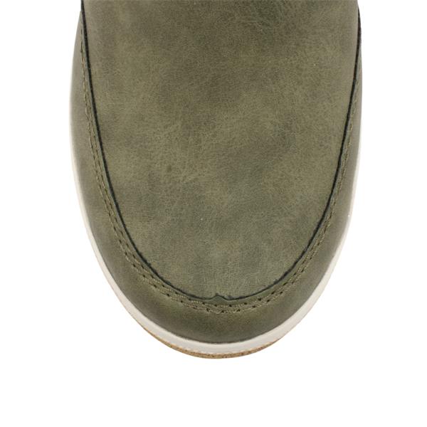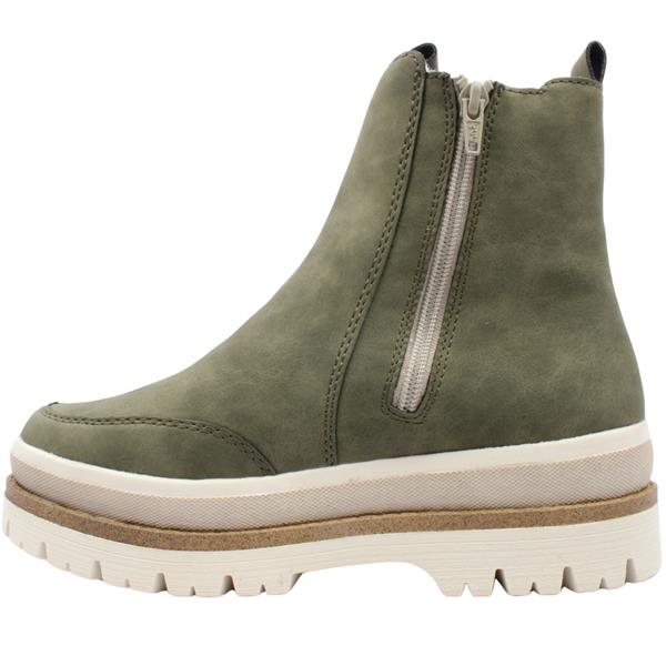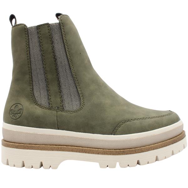Step into stylish comfort with the Rieker womens boots. Designed in a versatile olive green upper, this boot pairs rugged charm with all-day wearability. The soft fleece lining ensures warmth through cooler days. The side zip and elastic gusset offer easy access and a flexible fit. A chunky sole adds a bold, modern touch and extra grip. Riekers signature Antistress insole delivers superior cushioning and shock absorption.
