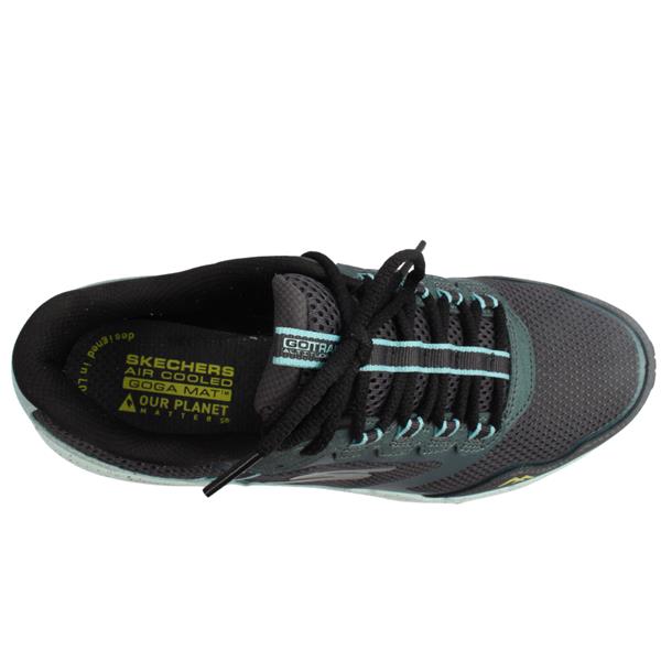 Conquer the trails with confidence in the Skechers womens trainers. Crafted with a navy leather and mesh upper, this trainer offers a balance of durability and breathability. Equipped with Skechers Air Cooled Goga Mat insole, it provides high rebound cushioning that keeps your feet cool and comfortable during extended wear. Features a water repellent design, helping to keep your feet dry in damp conditions.The Go Trail outsole is designed with multi directional traction lugs, providing grip and stability.