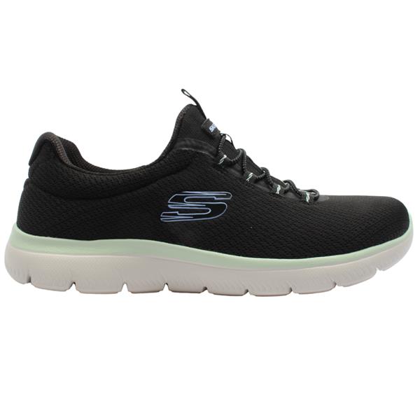 Brand: Skechers Style: 150268 Summits- Summer Blush Colour: Black Multi Heel Height: 3cm Closure: Elastic Laces Removeable Insole:No Materials: All Manmade
