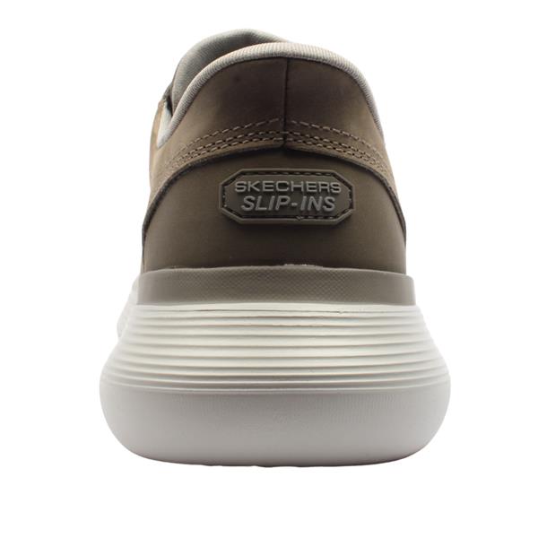 Step into comfort with mens trainers from Skechers shoes. Crafted from genuine leather in a soft taupe hue the upper delivers a refined neutral aesthetic. The elasticated lace system offers the look of traditional laces but with hands free convenience. Engineered for ease the slip in structure allows for quick wear and removal. The contoured Memory Arch support cushions your midfoot while the charcoal infused Air Cooled Memory Foam insole offers plush comfort and breathability.
