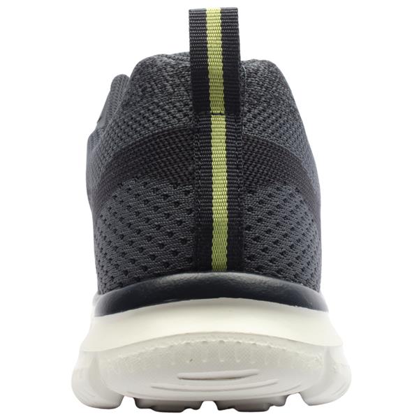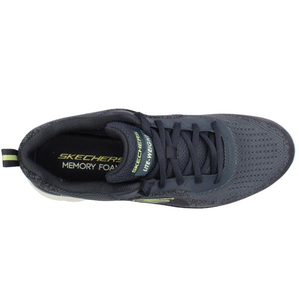 Step into all day comfort with this mens Skechers trainer. Navy textile upper that offers breathability and flex. Traditional lace up design for a secure, adjustable fit. Air Cooled Memory Foam footbed provides soft, responsive cushioning. Lightweight, flexible sole construction helps reduce foot fatigue and promotes natural movement.