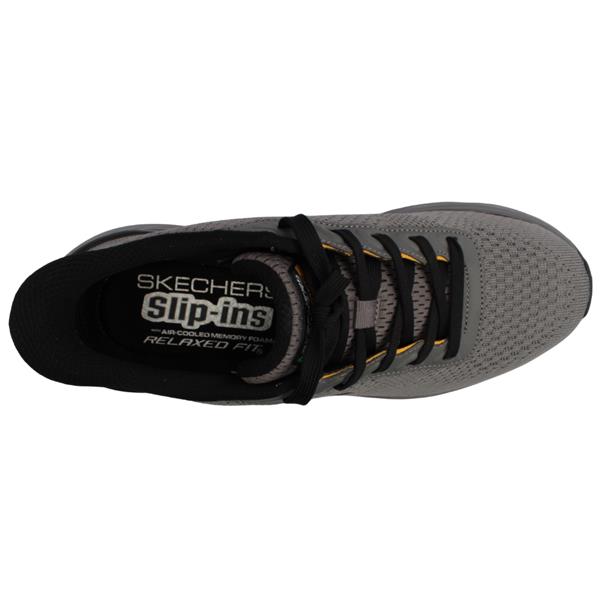 Step into comfort and style in these mens Skechers runners in a versatile grey upper. These Mens runners are designed with the exclusive Skechers Heel Pillow that holds your foot securely in place. The lace closure ensures a secure and comfortable fit on the foot. A Skechers Air-Cooled Memory Foam insole offers added support & comfort for all day wear. This style is from the Skechers Relaxed Fit range for a roomy comfort fit at toe and forefoot.