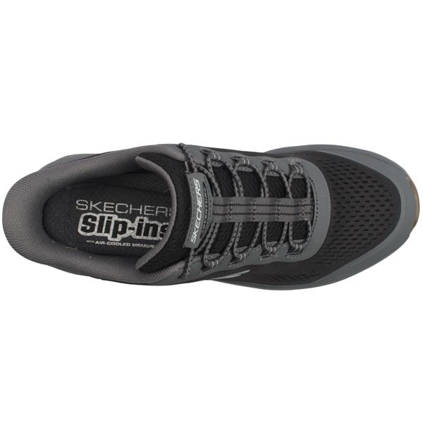 Step into comfort with mens trainers from Skechers shoes. Designed as a hands free slip on this shoe combines effortless wear with advanced cushioning. The engineered mesh and synthetic upper with stretch laces provides a flexible and breathable fit. Comfort is enhanced with the Skechers Air Cooled Memory Foam insole and the signature Heel Pillow delivering plush support.
