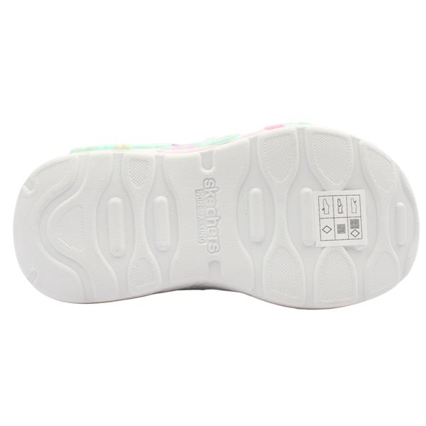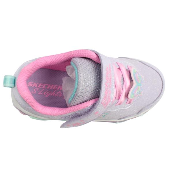 Girls butterfly runners from Skechers shoes. Designed with a sparkle lavender upper adding a fun pop of colour to every outfit. The elasticated lace and Velcro closure offer easy on and off. Featuring a light up sole allowing fun with every adventure