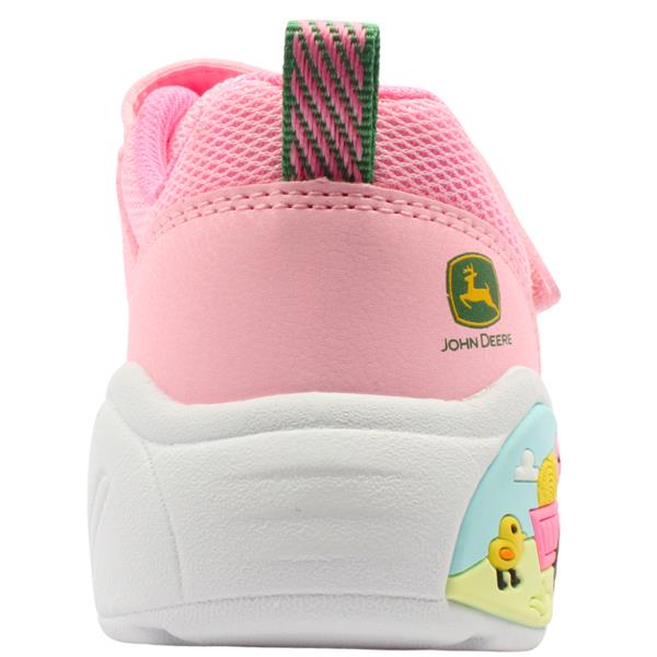 Let your little farmer step into adventure with the Skechers John Deere runners for girls, 303187N! Designed for comfort and fun, these runners feature elastic laces and a single Velcro strap for an easy, secure fit. The standout tractor and farm-themed detailing on the outsole and uppers adds a playful touch, perfect for young John Deere fans. Built with durable materials and a cushioned insole, these shoes provide all-day comfort for active little feet.