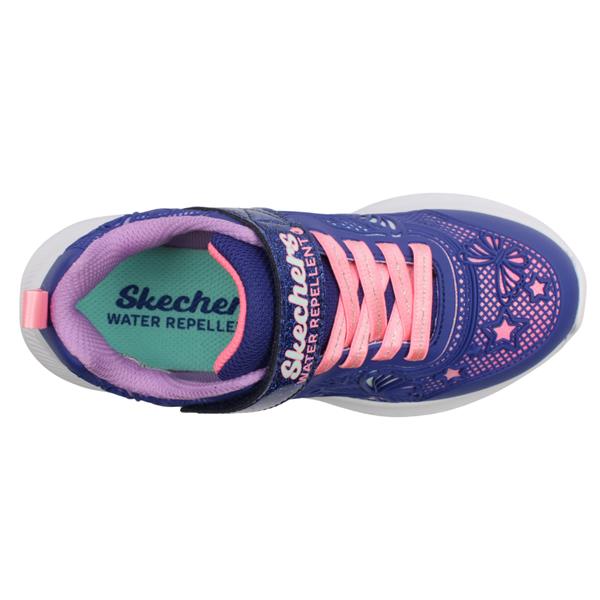 Skechers Jumpsters girls runners perfect for all-day play with their durable Tuff Tech construction. These shoes are water and scuff resistant, making them ideal for any adventure a child may encounter. The butterfly design adds a fun and stylish touch that any little girl will love. Whether running, jumping or just exploring, these runners will keep feet comfortable and protected. With the Skechers Girls runners, parents can trust that their child's feet are safe and secure, making for a worry-free day of play. Machine Washable on cold cycle