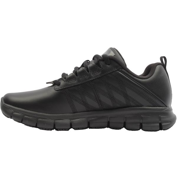 Brand: Skechers Style: 76576EC Sure Track-Erath Colour: Black Closure: Lace Removable Insole: No Width: Relaxed Fit Heel Height: Approx. 3cm Materials: Leather/textile upper, textile lining, manmade sole