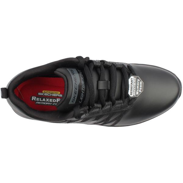 Experience slip resistant safety and all day comfort in these ladies work shoes from the Skechers Work range designed in a smooth black upper with a secure lace closure. These shoes have a Relaxed Fit design which provides ample space and all-day comfort for long days on your feet. Equipped with a memory foam insole for added comfort. These ladies work shoes comply with EU Regulation for Personal Protective Equipment.
