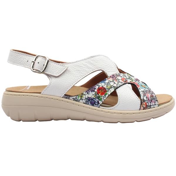 Step into effortless comfort and everyday style with the Softmode Ladies Sandal Betty in White with Floral detailing by Softmode. Designed with both elegance and practicality in mind, the Betty sandal features an adjustable sling-back strap, allowing you to customize the fit for secure, all-day wear. The elasticized front panel gently stretches across your foot, adapting to your natural shape for enhanced comfort and flexibility with every step. The beautiful blue finish adds a fresh, versatile touch to your wardrobe , perfect for pairing with summer dresses, casual denim, or relaxed weekend outfits. Lightweight and easy to slip on, this sandal is ideal for daily wear, travel, or leisurely outings.