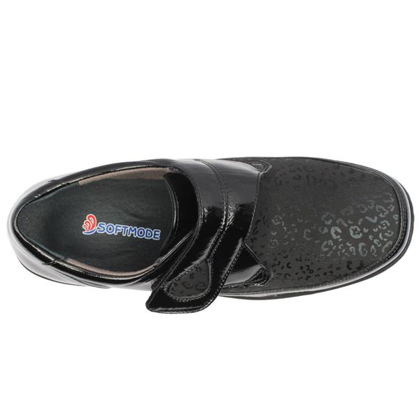 Brand: Softmode Style: Elma Colour: Black Multi Closure: Velcro Strap Removable Insole: Yes Width: 2E - Extra Extra Wide Fitting Heel Height: Approx 4cm Materials: Leather/textile upper, leather/textile lining & manmade sole