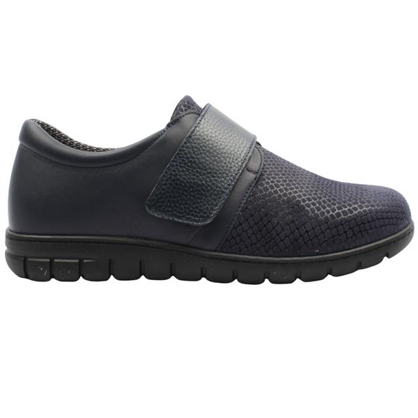 Brand: Softmode Style: Giselle Colour: Navy Closure: Velcro Strap Removable Insole: Yes Width: 3E - Extra Extra Wide Fitting Heel Height: Approx 2.5cm Materials: Leather/textile upper, leather/textile lining & manmade sole