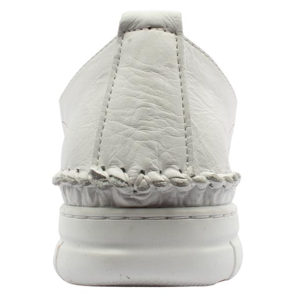 Enjoy effortless everyday comfort with the Softmode Summer Shoe Lilly in White. Crafted with a soft leather upper.. The beautifully shaped punched hole detailing not only enhances airflow but adds a subtle decorative touch, giving this shoe a refined summer look. An elastic front panel allows for easy slip-on convenience while gently stretching to accommodate your foot for a secure, flexible fit. Inside, the removable leather insole provides cushioned support and the option to insert your own orthotics if needed.Finished with a low wedge outsole, Lilly offers a slight lift for flattering height while maintaining stability and all-day comfort.