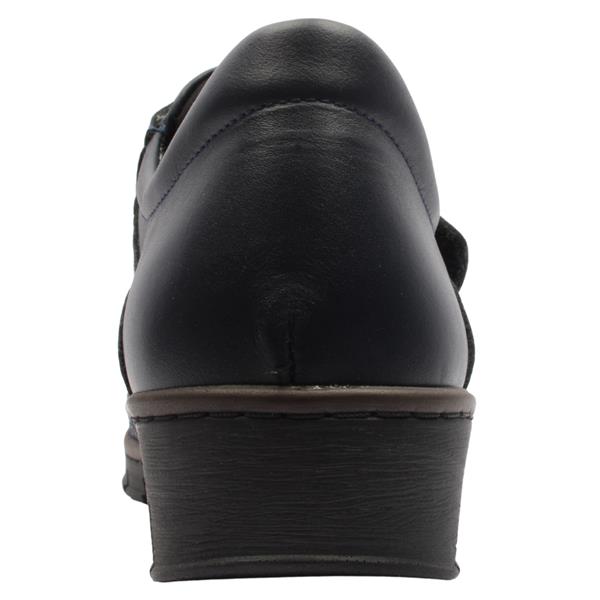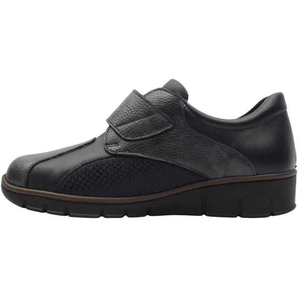 Step into everyday comfort with the Softmode womens shoe. Designed with both style and support in mind, this versatile shoe is crafted in a smooth navy leather upper with soft fabric panels along each side for flexibility and a gentle fit. The 2E wider fitting ensures extra room, making it a great choice for those needing a little more space or seeking diabetic friendly shoes. Practicality meets ease with the Velcro closure, giving you a secure and adjustable fit.