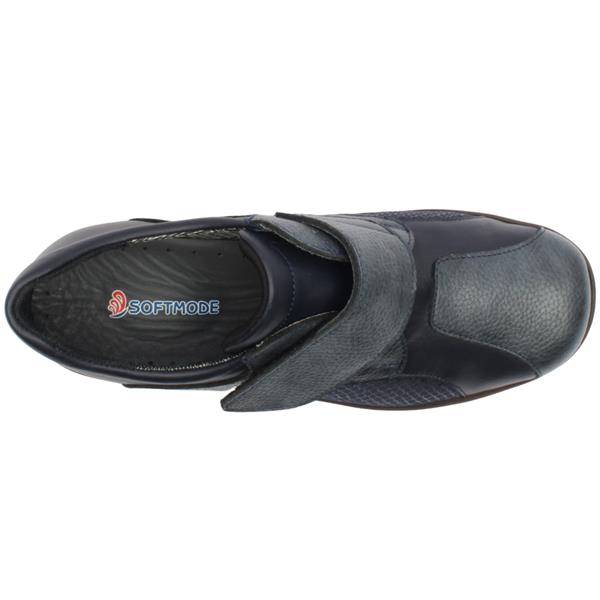 Brand: Softmode Style: Ocean Colour: Navy Closure: Double Velcro closure Removable Insole: Yes Heel Height: Approx 3.5CM Width: '2E' Fitting Materials: Leather/Textile upper, lining, leather insole & manmade sole